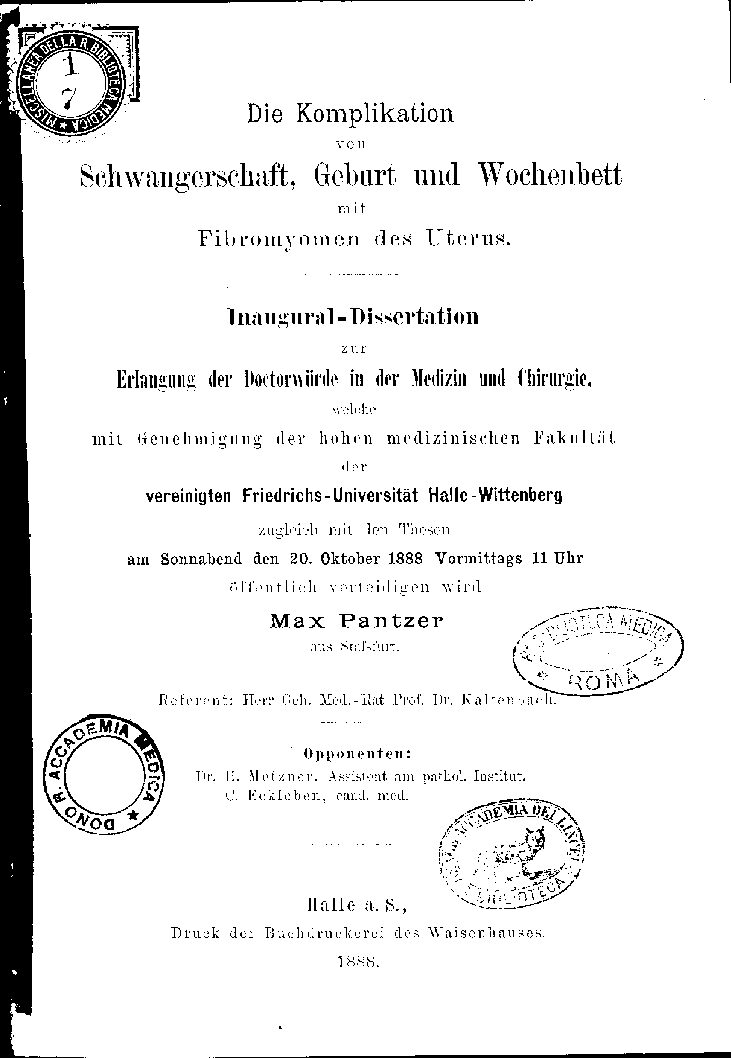 Erlangung der Doctorwürde in der Medizin und Chirurgie,