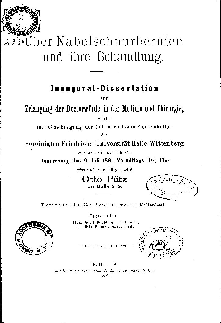 Erlangung der Doctorwürde in der Medicin und Chirurgie,