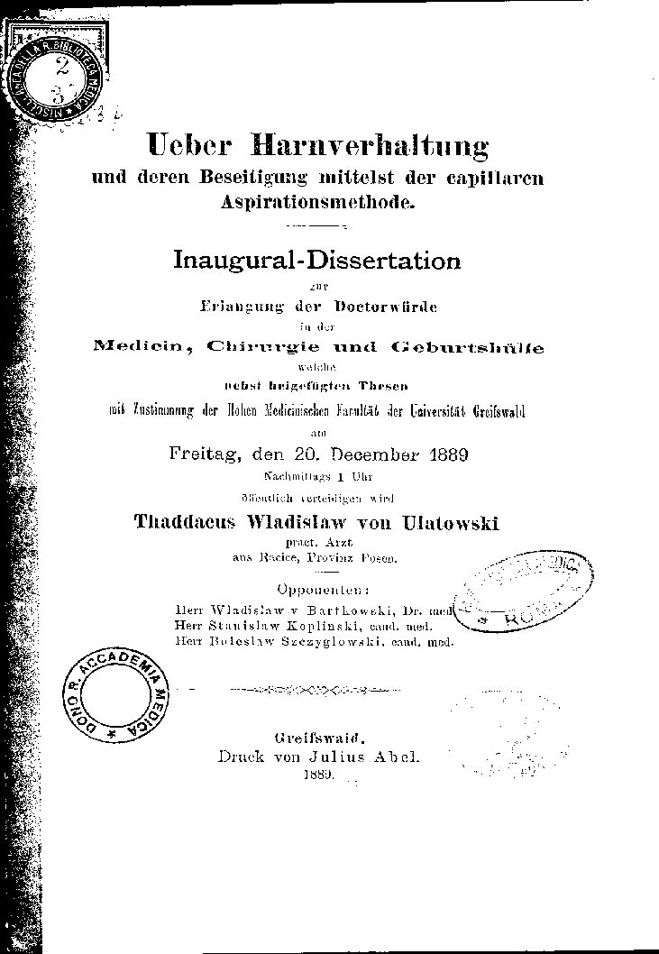 mit Zustimmung der Hohen medicinischen Facultät der Universität Greifswald