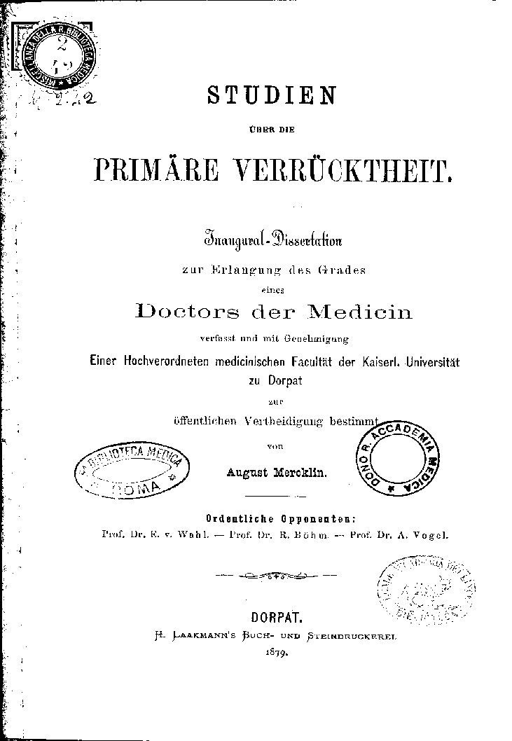 Einer Hochverordneten medicinischen Facultät der Kaiserl. Universität