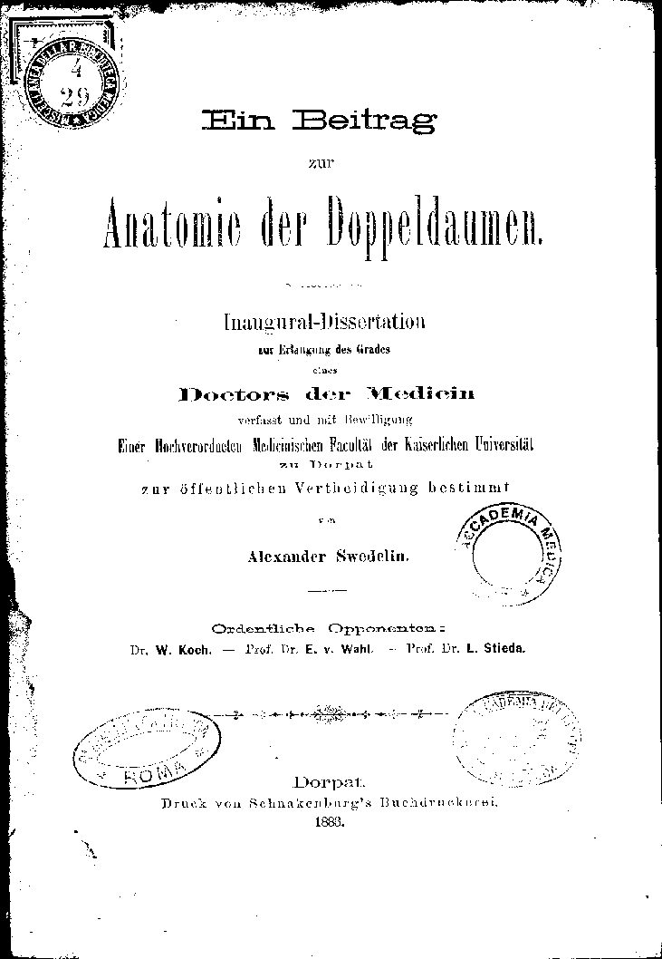 Einer Hochverordnelen Medicinischen Fakultät der Kaiserlichen Universität