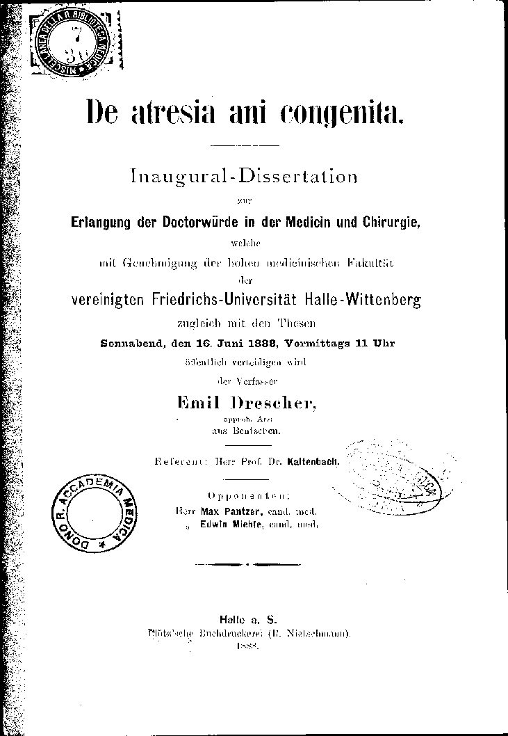 Erlangung der Doctorwürde in der Medicin und Chirurgie,