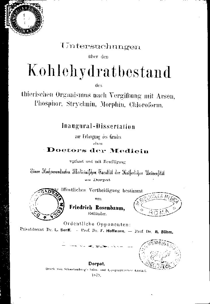 Einer Hochverordneten Medicinischen Facultät der Kaiserlichen Universitat