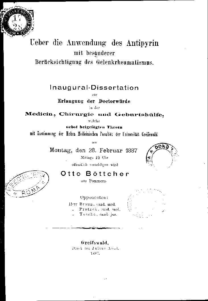mit Zustimmung der Hohen Medicinischen Facultät der Universität Greifswald