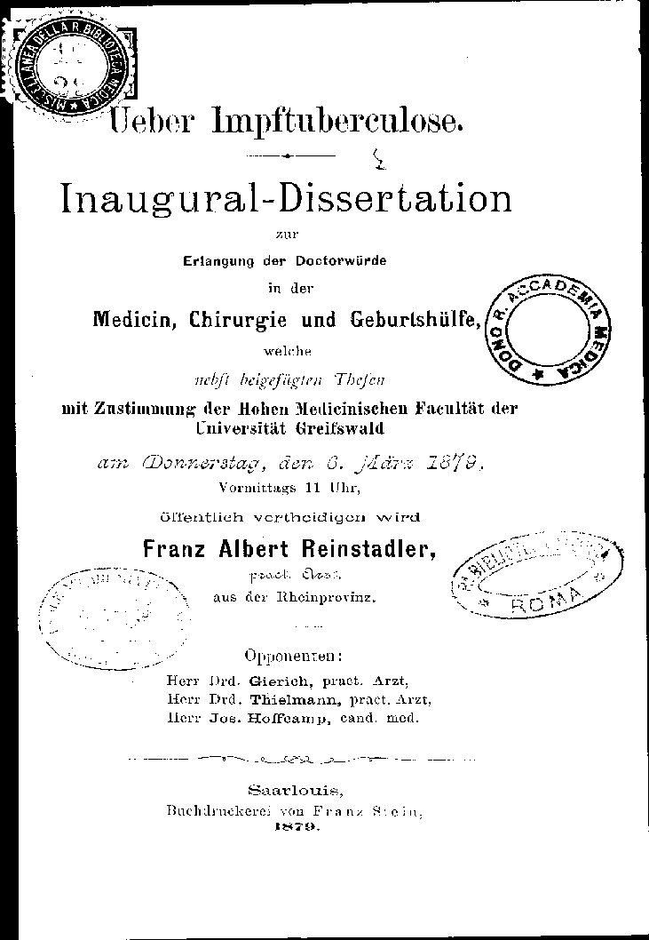 mit Zustimmung der Hohen Medicinischen Facultät der