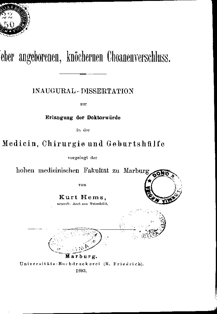 Ueber angeborenen, knöchernen Choanenverschluss.