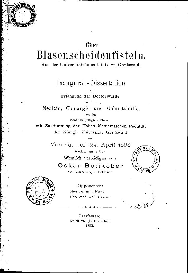 Aus der Universitätsfrauenklinik zu Greifswald.