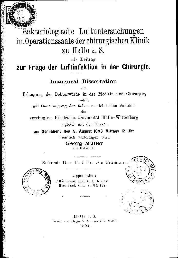 Erlangung der Doktorwürde in der Medicin und Chirurgie,