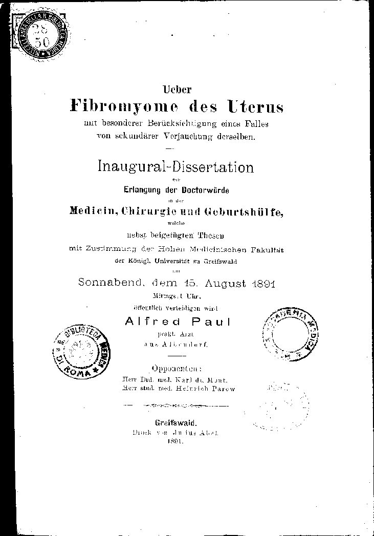 mit Zustimmung der Hohen Medicinischen Fakultät
