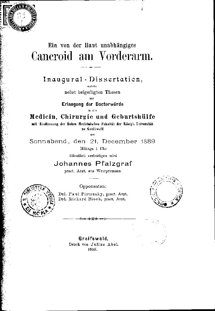 mit Zustimmung der Hohen Medicinischen Fakultät der Königl. Universität