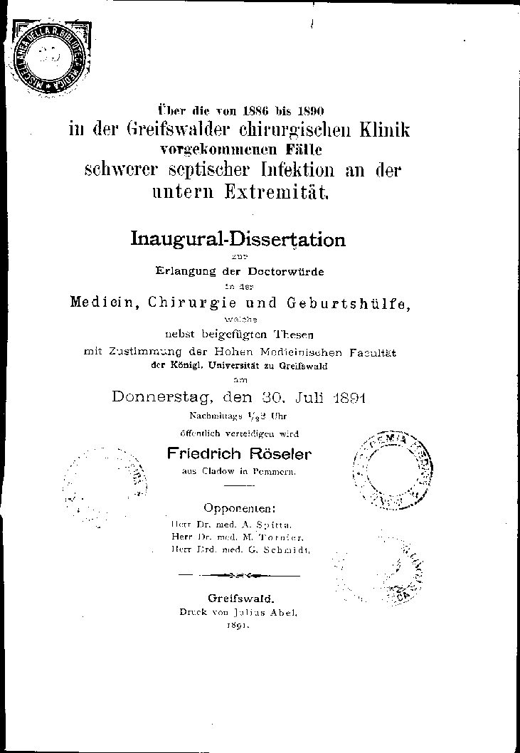 der Königl Universität zu Greifswald