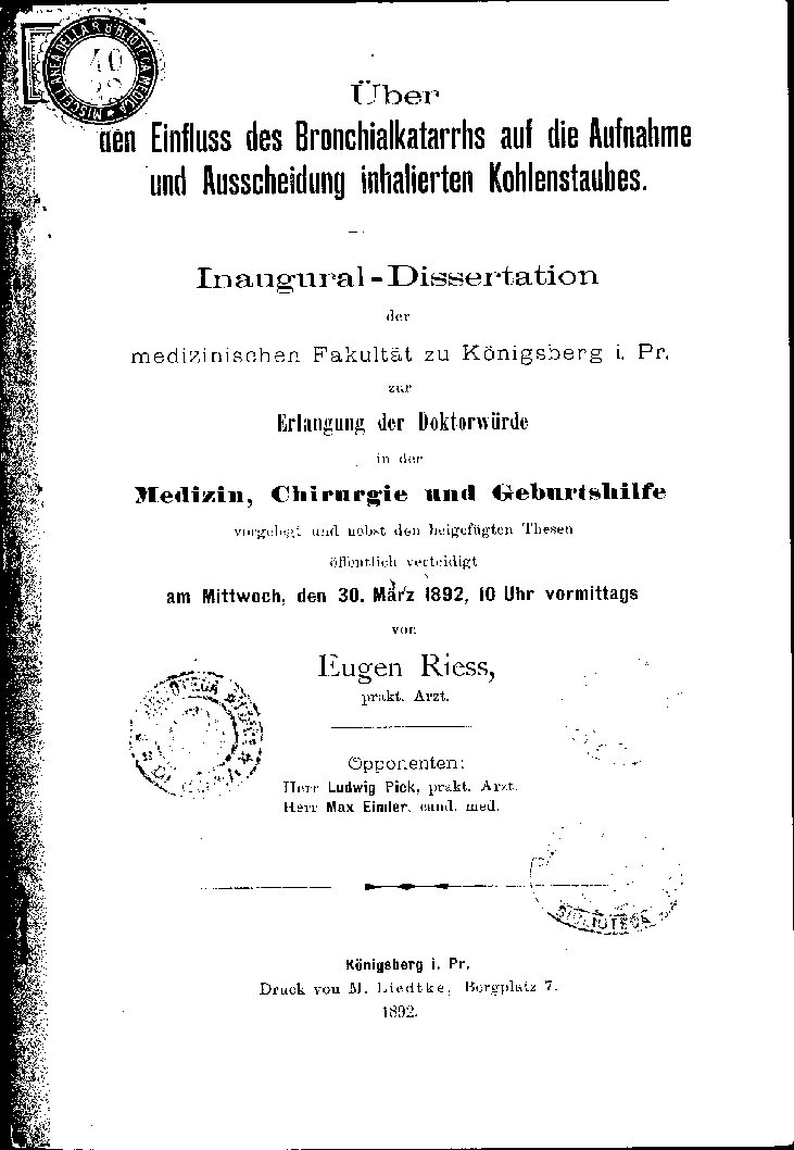 medizinischen Fakultät zu Königsberg i. Pr.