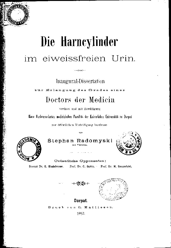 Einer Hochverordneten medicinischen Facultät der Kaiserlichen Universität zu Dorpat