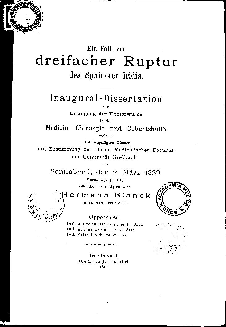 mit zustimmung der Hohen Medicinischen Facultät