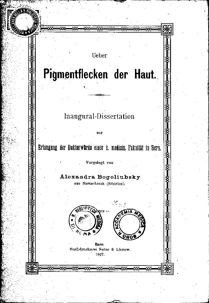 Erlangung der Doktorwürde einer h. medicin. Fakultät in Bern.