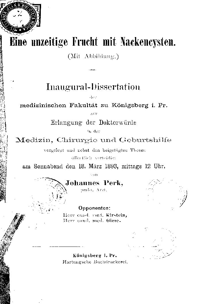 Eine unzeitige Frucht mit Nackencysten.