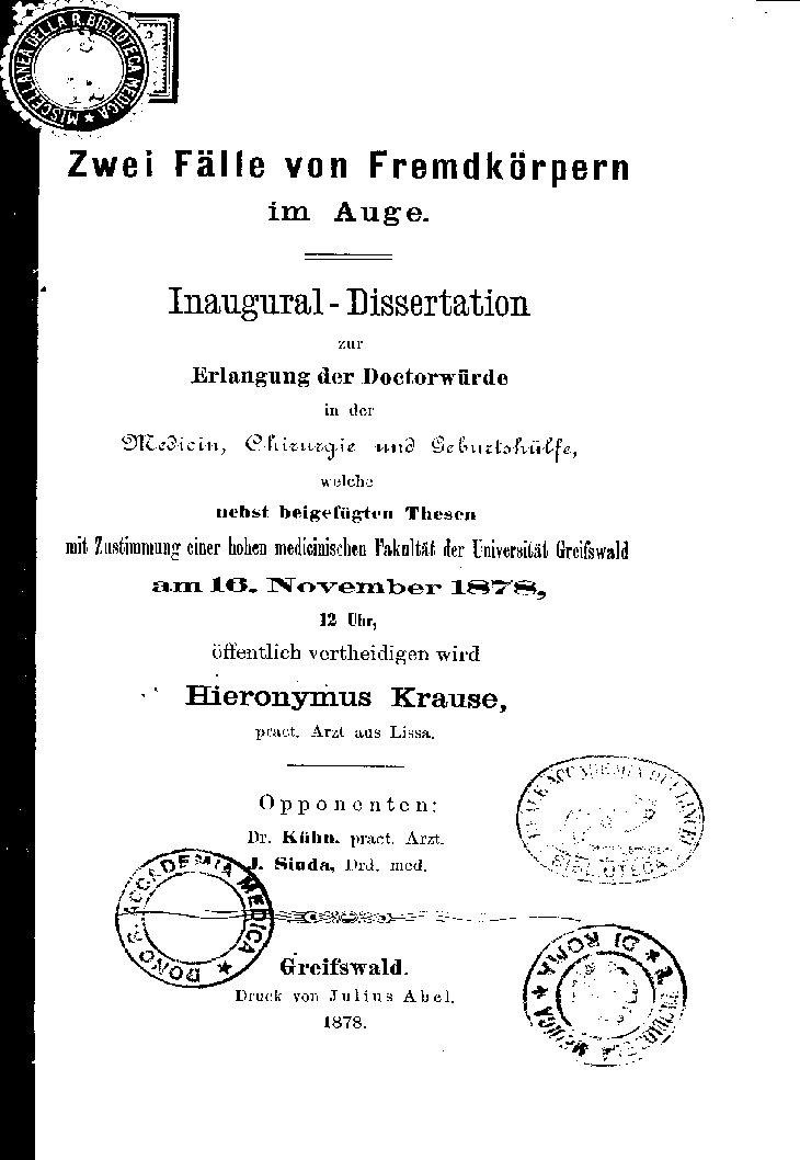 mit Zustimmung einer hohen medicinischen Fakultät der Universität Greifswald