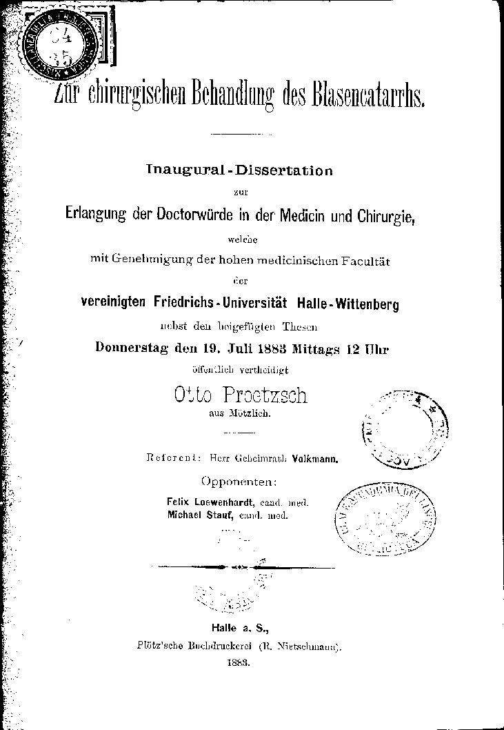 mit Genehmigung der hohen medicinischen Facultät