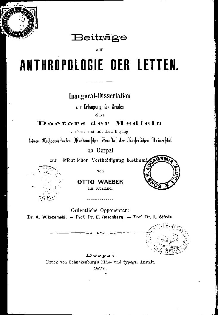 ANTHROPOLOGIE DER LETTEN.