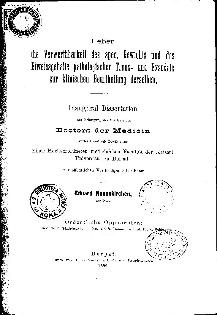 Einer Hochverordneten medicinischen Facultät der Kaiserl.