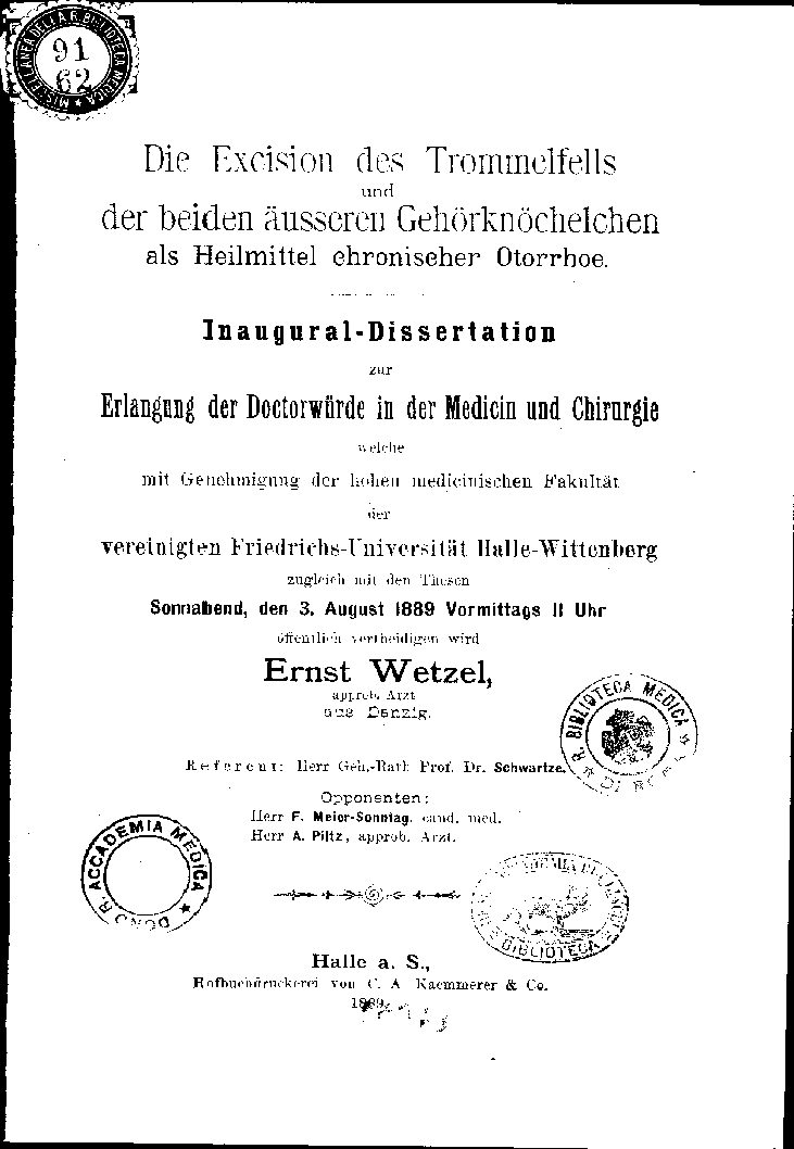 Erlangung der Doctorwürde in der Medicin und Chirurgie