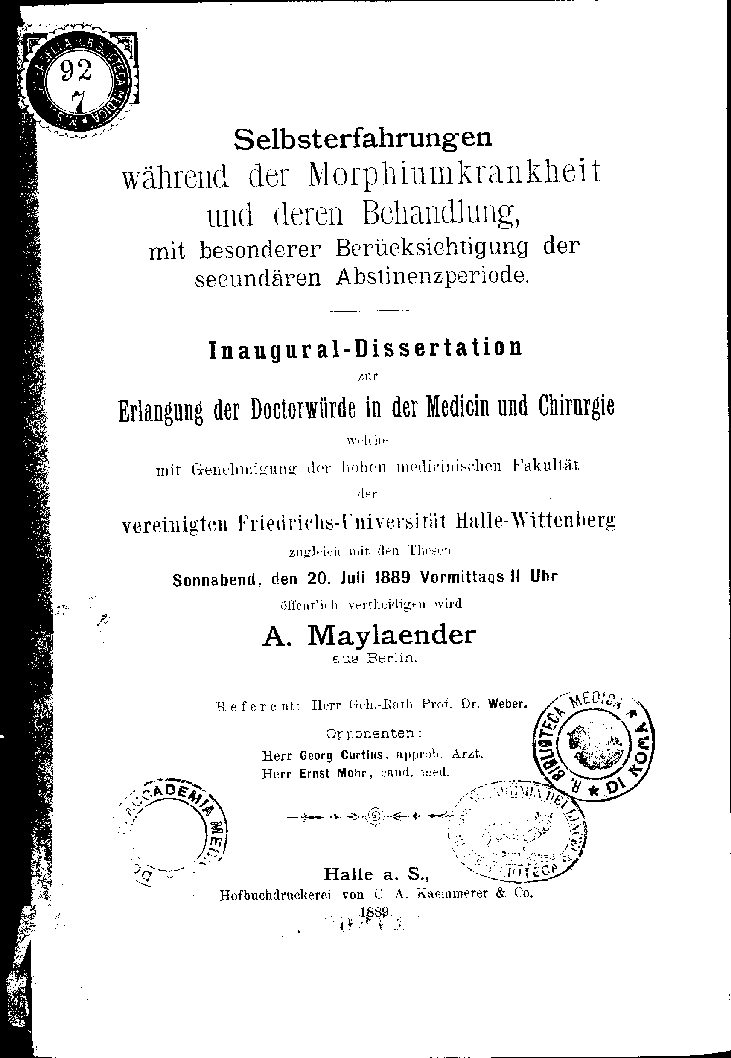 Erlangung der Doctorwürde in der Medicin und Chirurgie