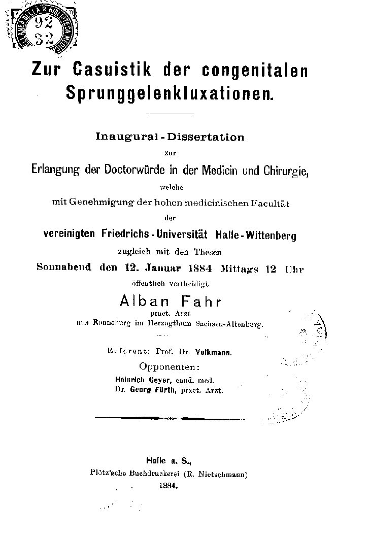 Erlangung der Doctorwürde in der Medicin und Chirurgie,