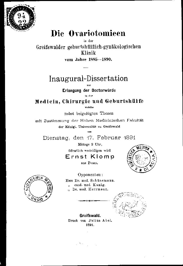 mit Zustimmung der Hohen Medicinischen Fakultät