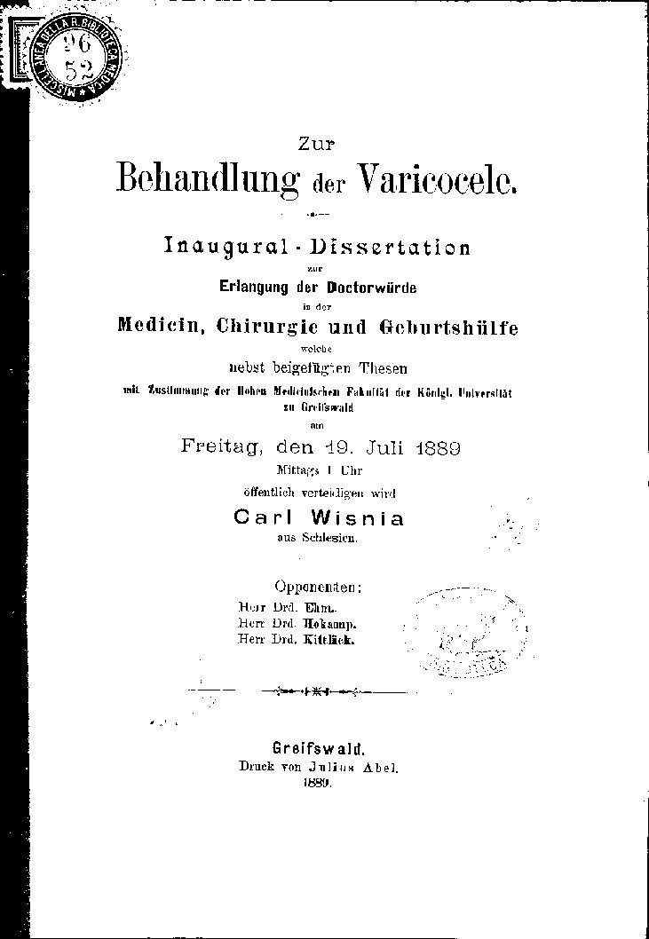 mit Zustimmung der Hohen Medicinischen Fakultät der Königl. Universität