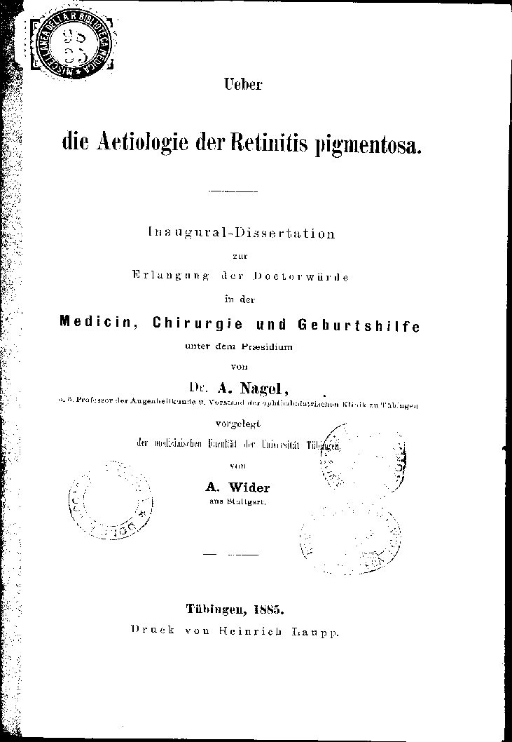 o.ö .Professor der Augenheilkunde u. Vorstand der opthalmiatrischen Klinik zu Tübingen