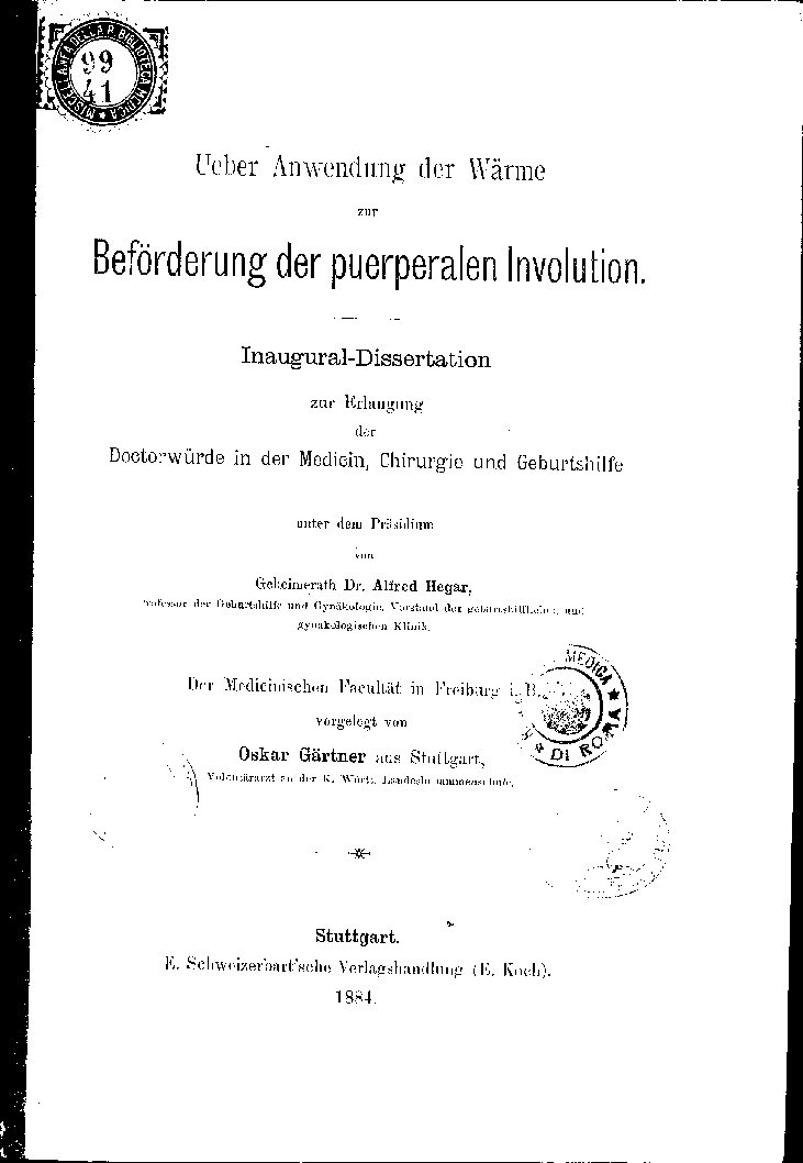 Volontärarzt an der K. Württ. Landeshebammenschule.