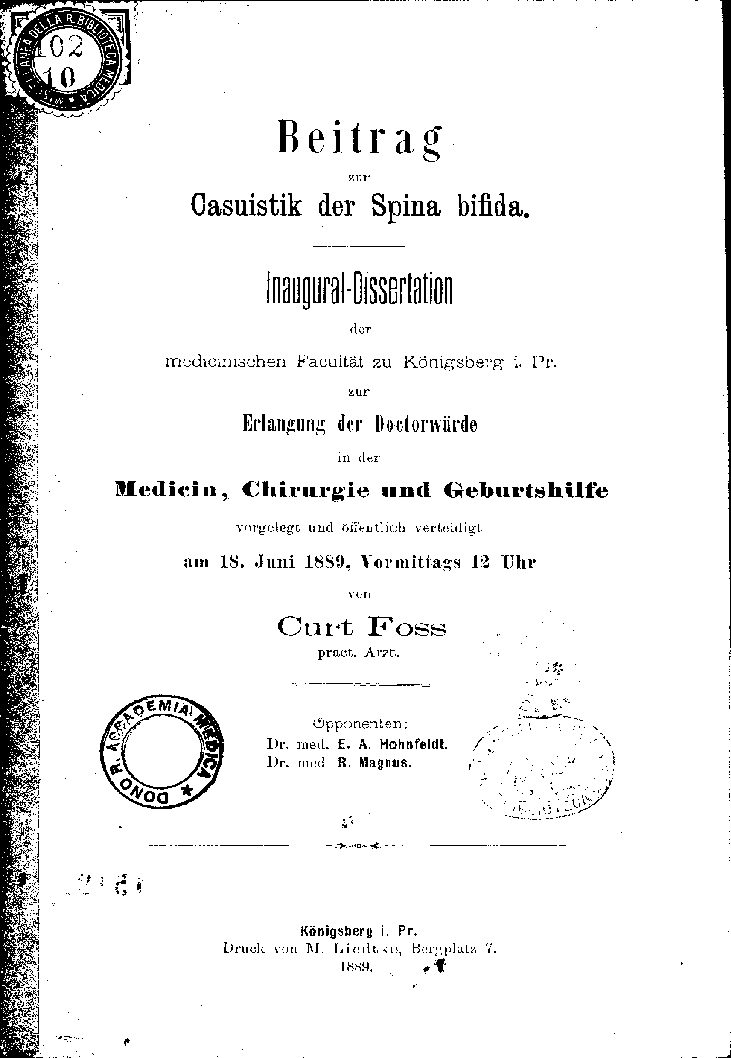 medicinischen Facultät zu Königsberg i. Pr.