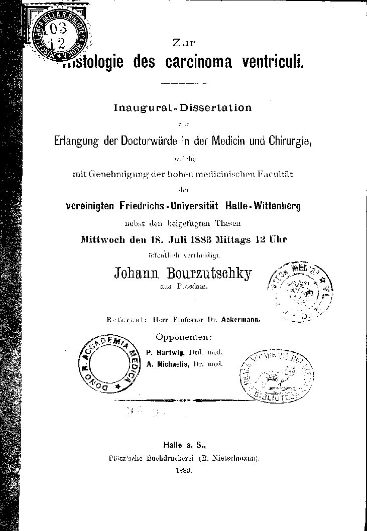 Erlangung der Doctorwürde in der Medicin und Chirurgie,