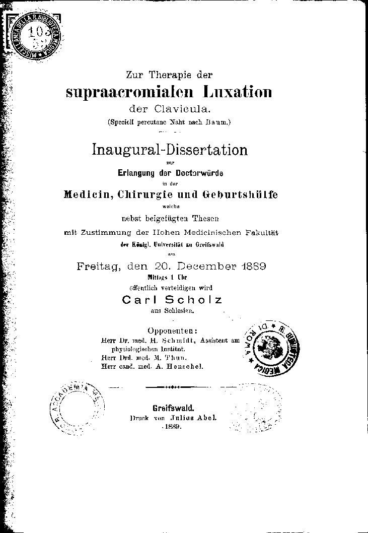 mit Zustimmung der Hohen Medicinischen Fakultät