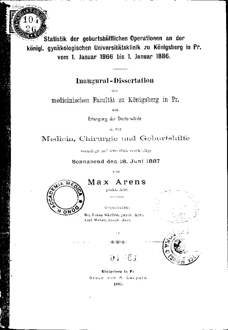 Königl. gynäkologischen Universitätsklinik zu Königsberg in Pr.