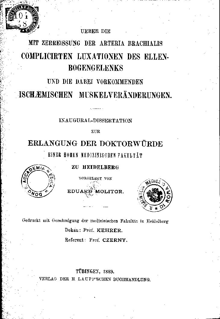 Gedruckt mit Genehmigung der medizinischen Fakultät in Heidelberg