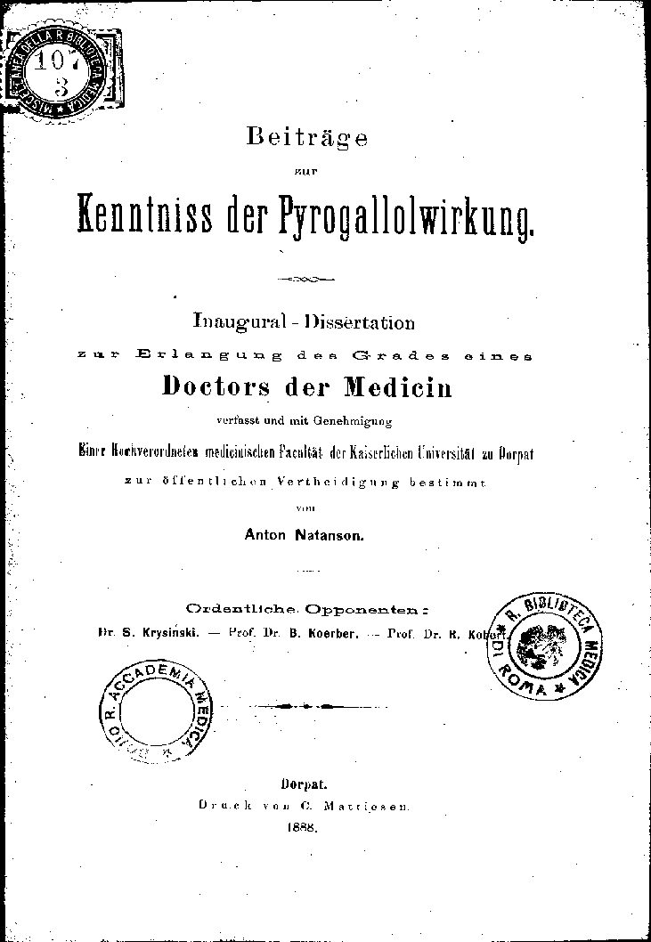 Einer Hochverordneten medicinischen Facultät der Kaiserlichen Universität zu Dorpat