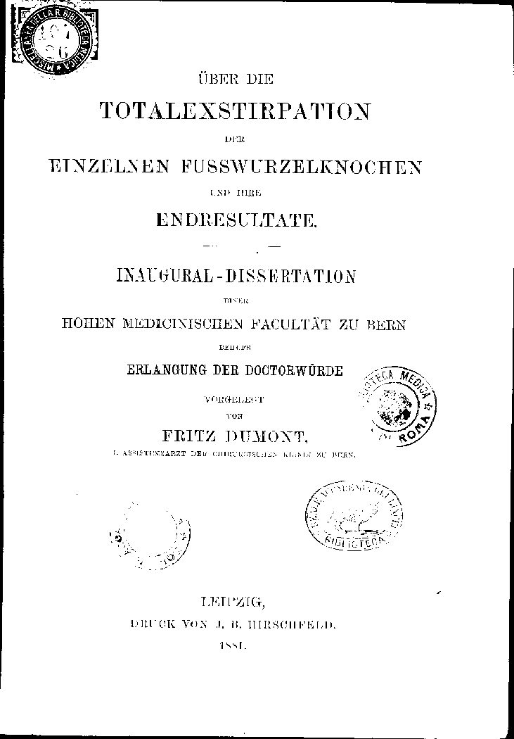 I ASSTSTENZARZT DER CHIRURGISCHEN KLINIK ZU BERN