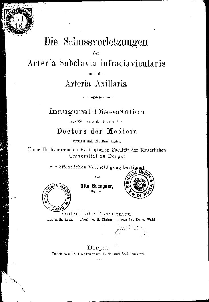 Einer Hochverordneten Medicinischen Facultät der Kaiserlichen