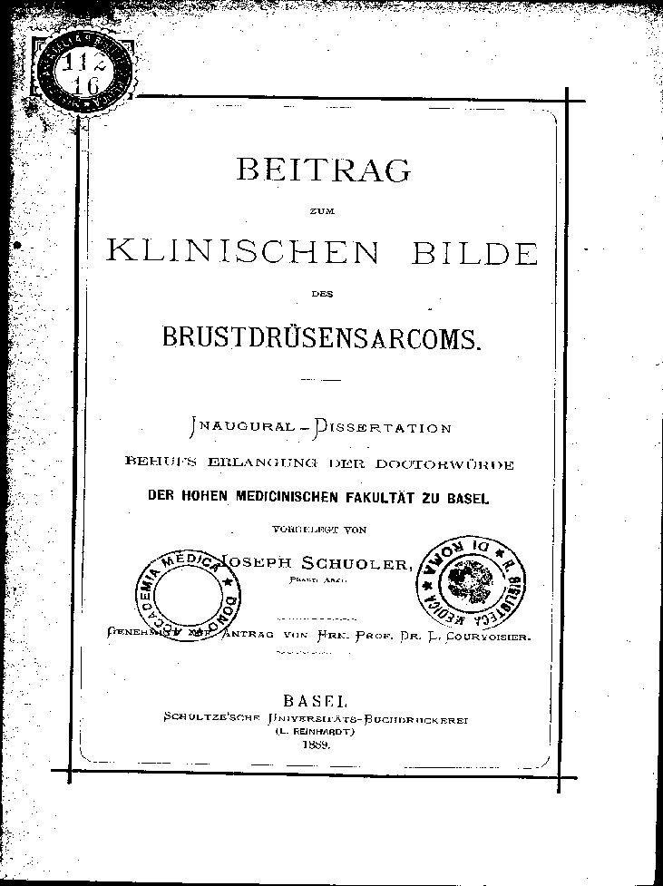 DER HOHEN MEDICINISCHEN FAKULTÄT ZU BASEL