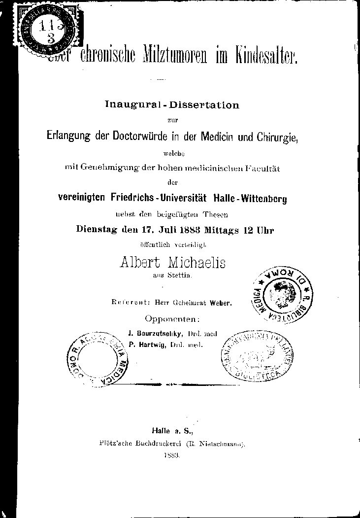 mit Genehmigung der hohen medicinischen Facultät