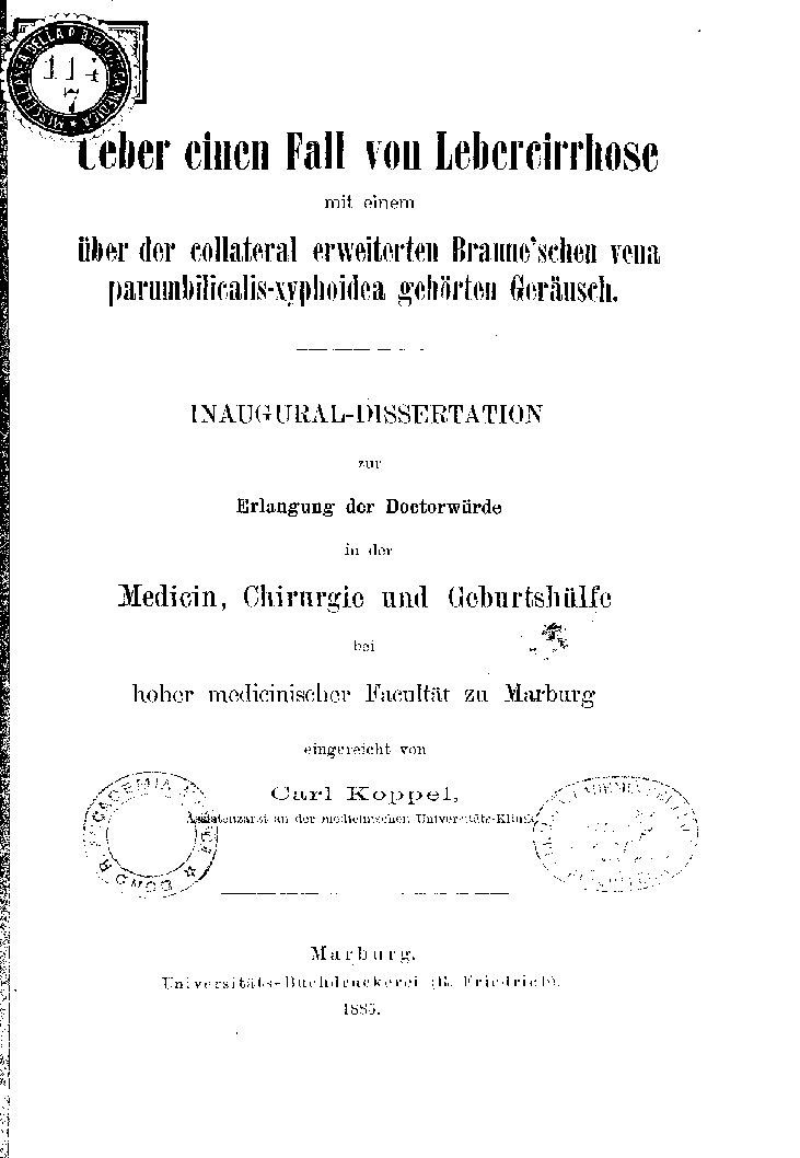 hoher medicinischer Facultät zu Marburg
