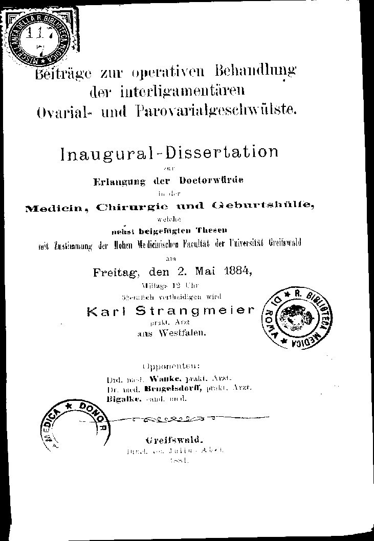 mit Zustimmung der Hohen Medicinischen Facultät der Universität Greifswald