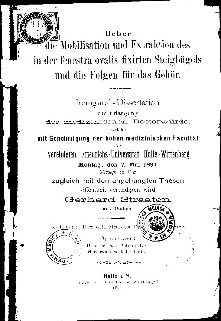 mit Genehmigung der hohen medicinischen Facultät