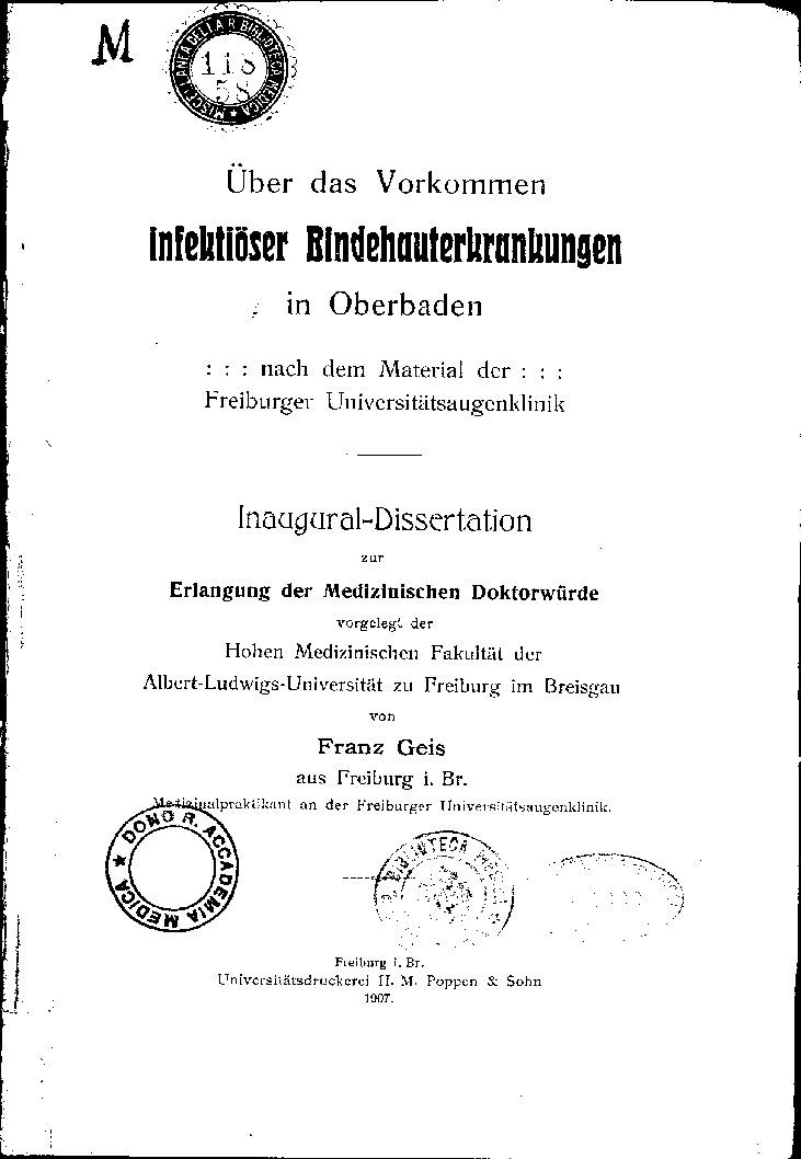 Medizinalpraktikant an der Freiburger Universitätsaugenklinik.