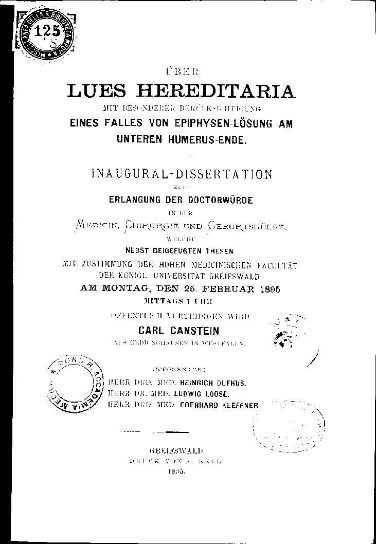 MIT ZUSTIMMUNG DER HOHEN MEDICINISCHEN FACULTÄT