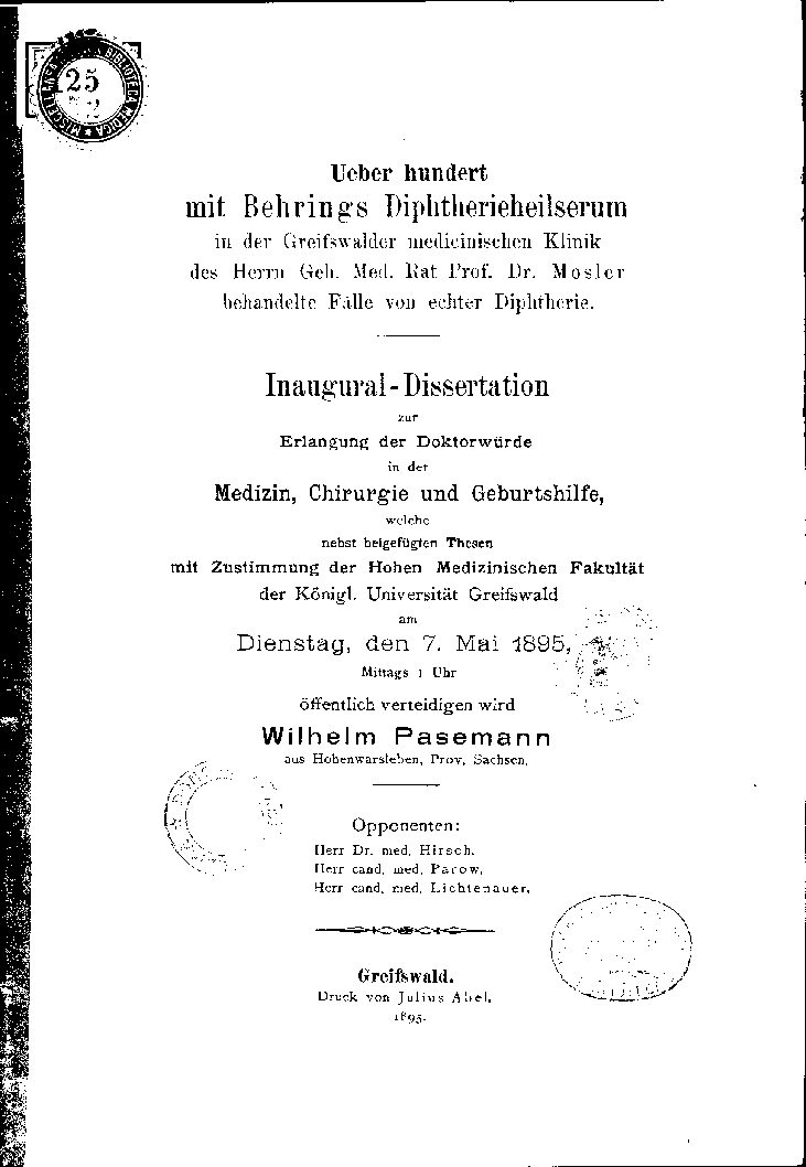 mit Zustimmung der Hohen Medizinischen Fakultät