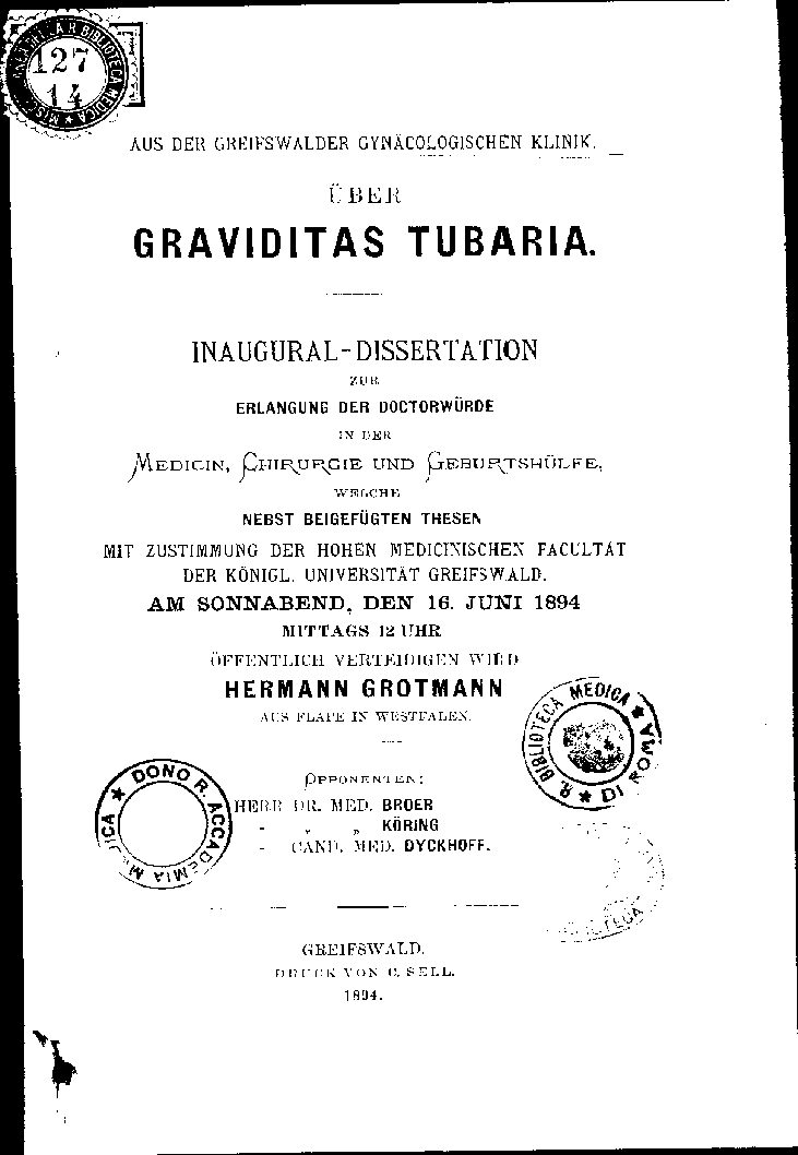 MIT ZUSTIMMUNG DER HOHEN MEDICINISCHEN FACULTÄT