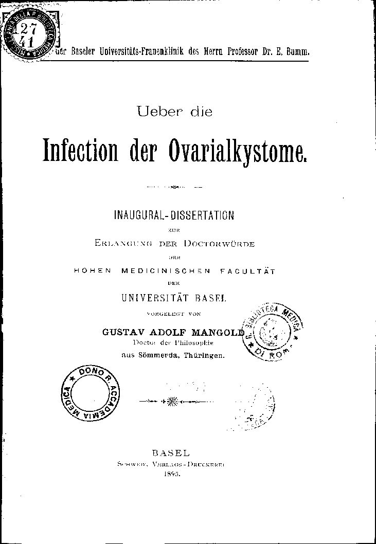 Baseler Universitäts-Frauenklinik des Herrn Professor Dr. E. Bumm.