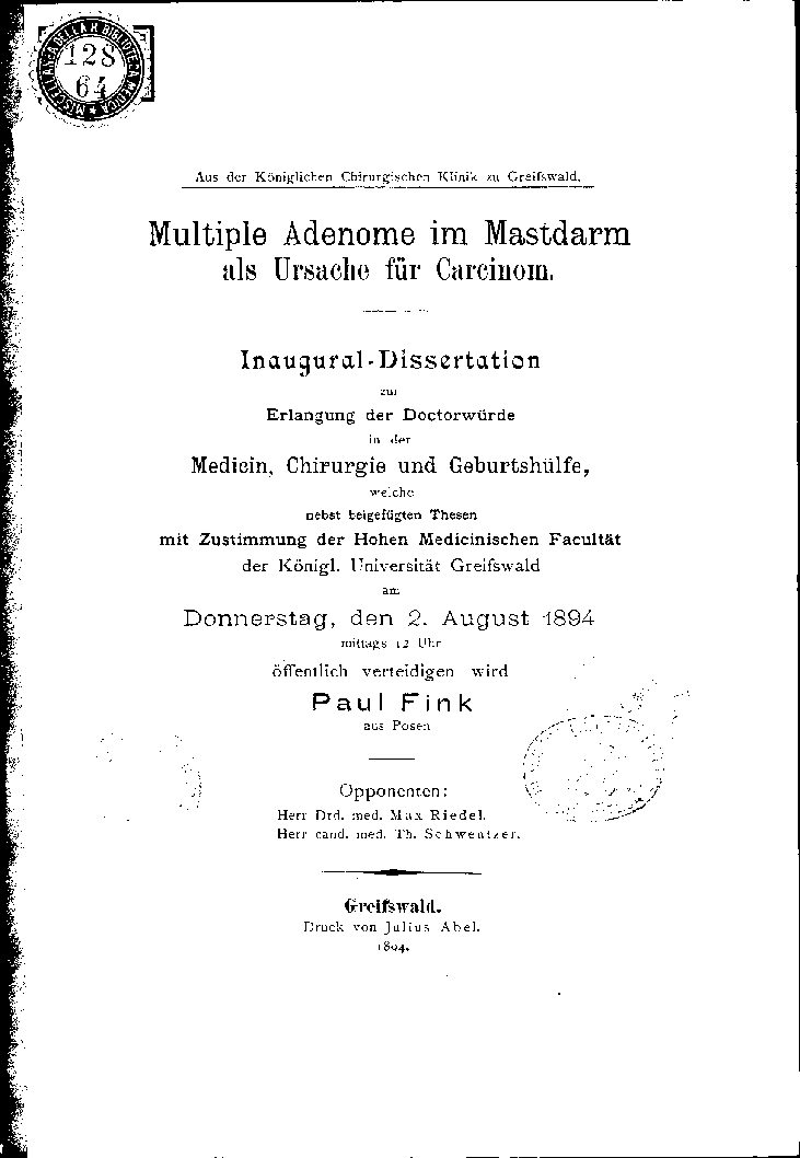 mit Zustimmung der Hohen Medicinischen Facultät